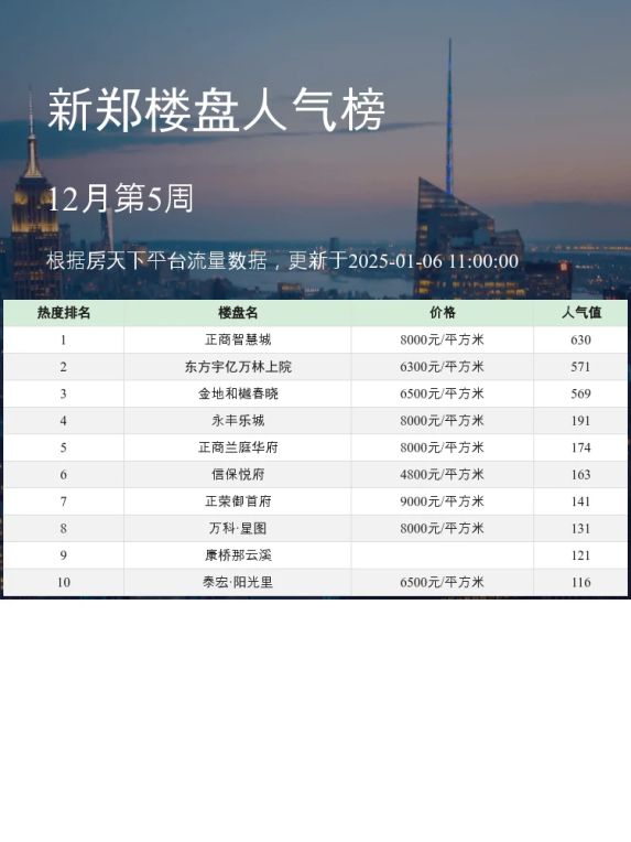 新郑人气楼盘榜:正商智慧城独占鳌头
