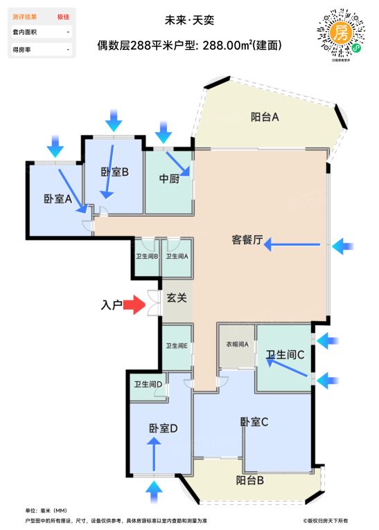 2️⃣ 双主卧套间拯救家庭矛盾,但保姆动线藏在厨房背后,家政间与儿童活动区形成隐形干扰源