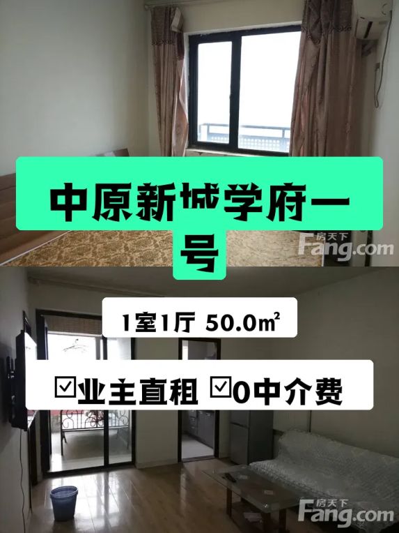 中原郑州晚报社中原新城学府一号 1室1厅 50㎡ 1200元