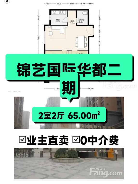 标题:急售!自家锦艺国际华都南向两居室,24层视野超棒🌇