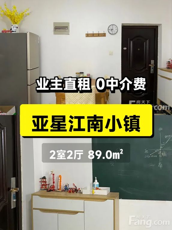 标题:自家亚星江南小镇89平南向两房出租,好楼层随时入住🏠