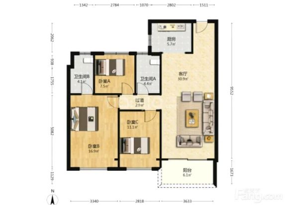 标题:自家精装大三居 南向采光无敌 69.9w急售✨