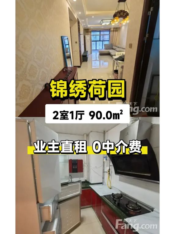 标题:自家锦绣荷园90平两房出租,南北通透只要1000/月✨