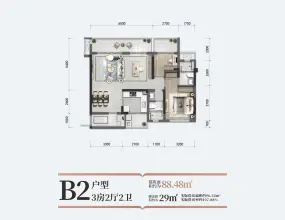 3居(87㎡), 3居(88㎡), 4居(105㎡)